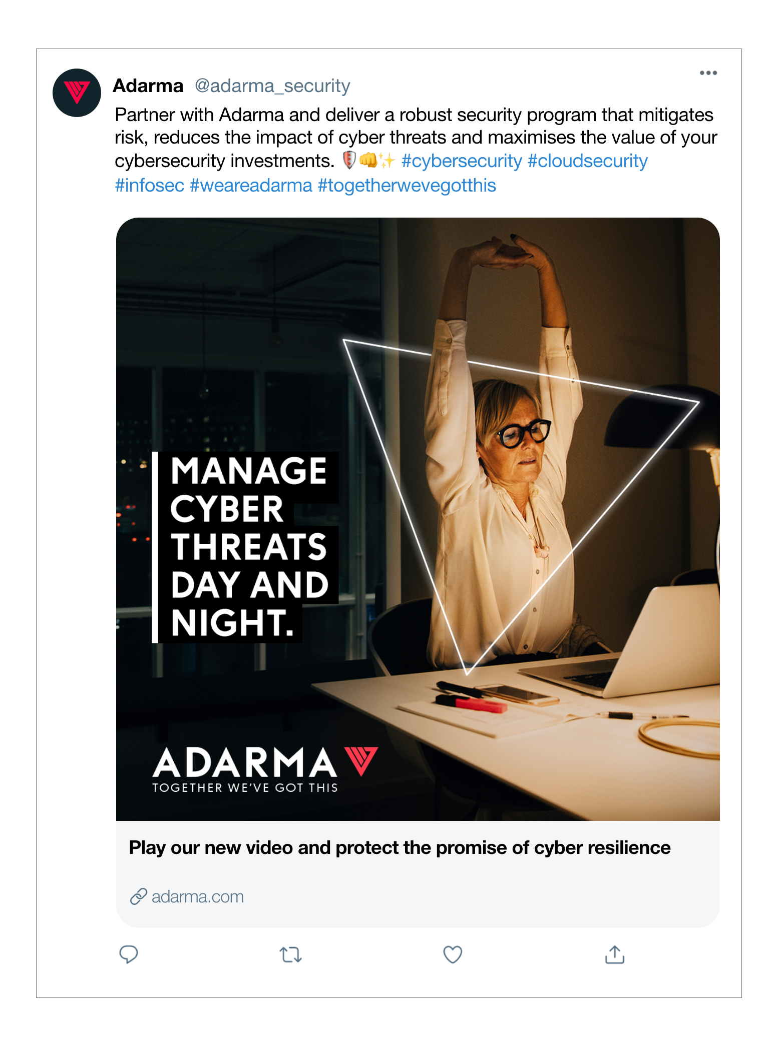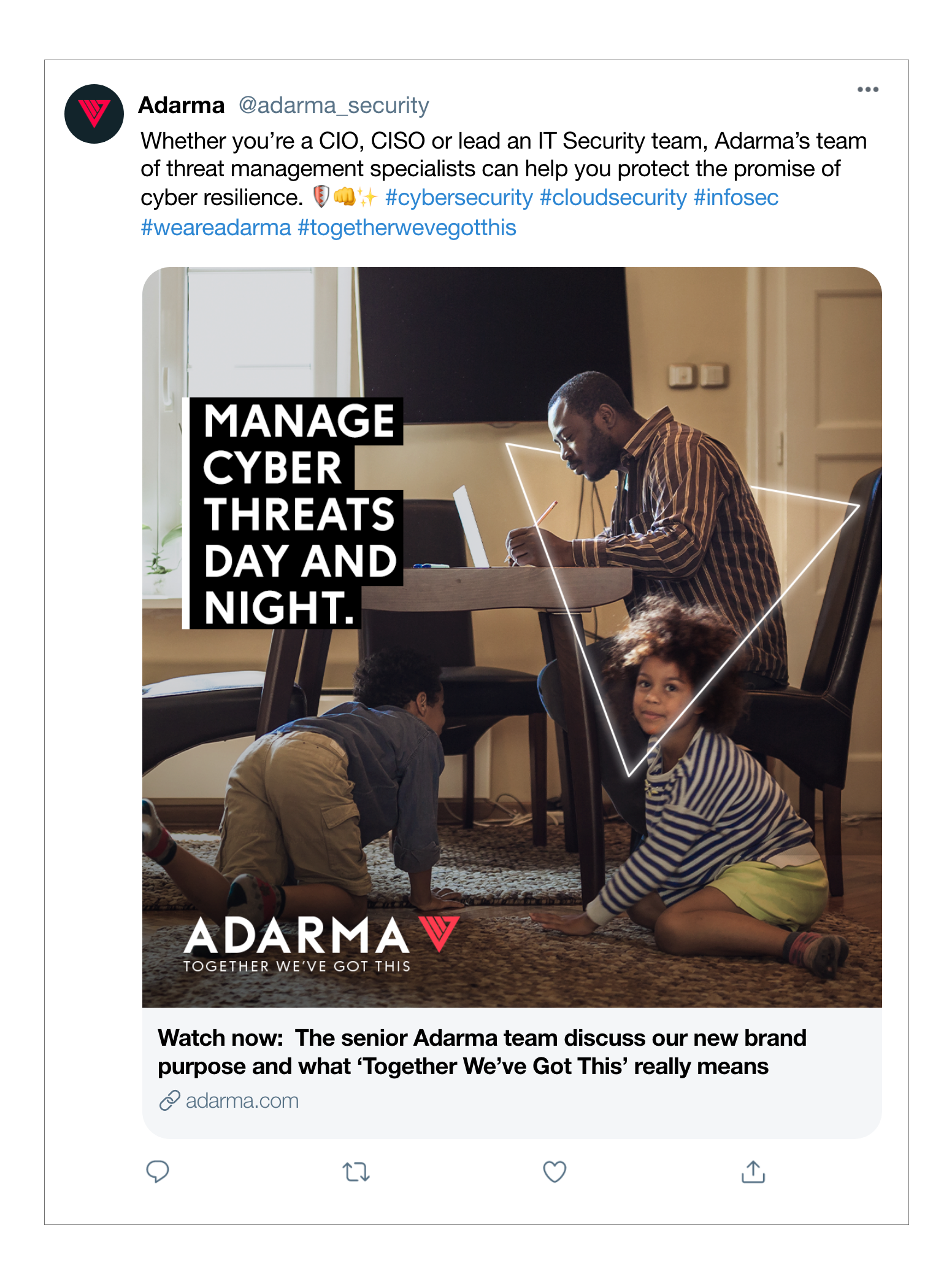Cyber Security isn’t a topic most people talk about. So we humanised it by showing the people that play a vital role in keeping your data safe in their day-to-day working lives. So that breaches in cyber security aren’t something that become part of our conversation. We used social media to spread the message across the industry delivering massive cut through a lot of secure chat.
