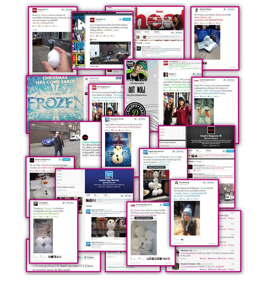 Disney wanted to raise the excitement about Frozen but it was nearly six months early and in the middle of a heatwave. We decided the best thing to do was order a ton of snow (literally) to be delivered to our office in Soho then post real snowballs out to all the film press. Specially designed packaging ensured they got real snowballs delivered to their desks. They loved it and the Twittersphere went ballistic. We surprised top tweeter Total Film with a snowball fight outside their offices and we even posted a 'snowball fight' to Absolute radio where they fought live on air.
