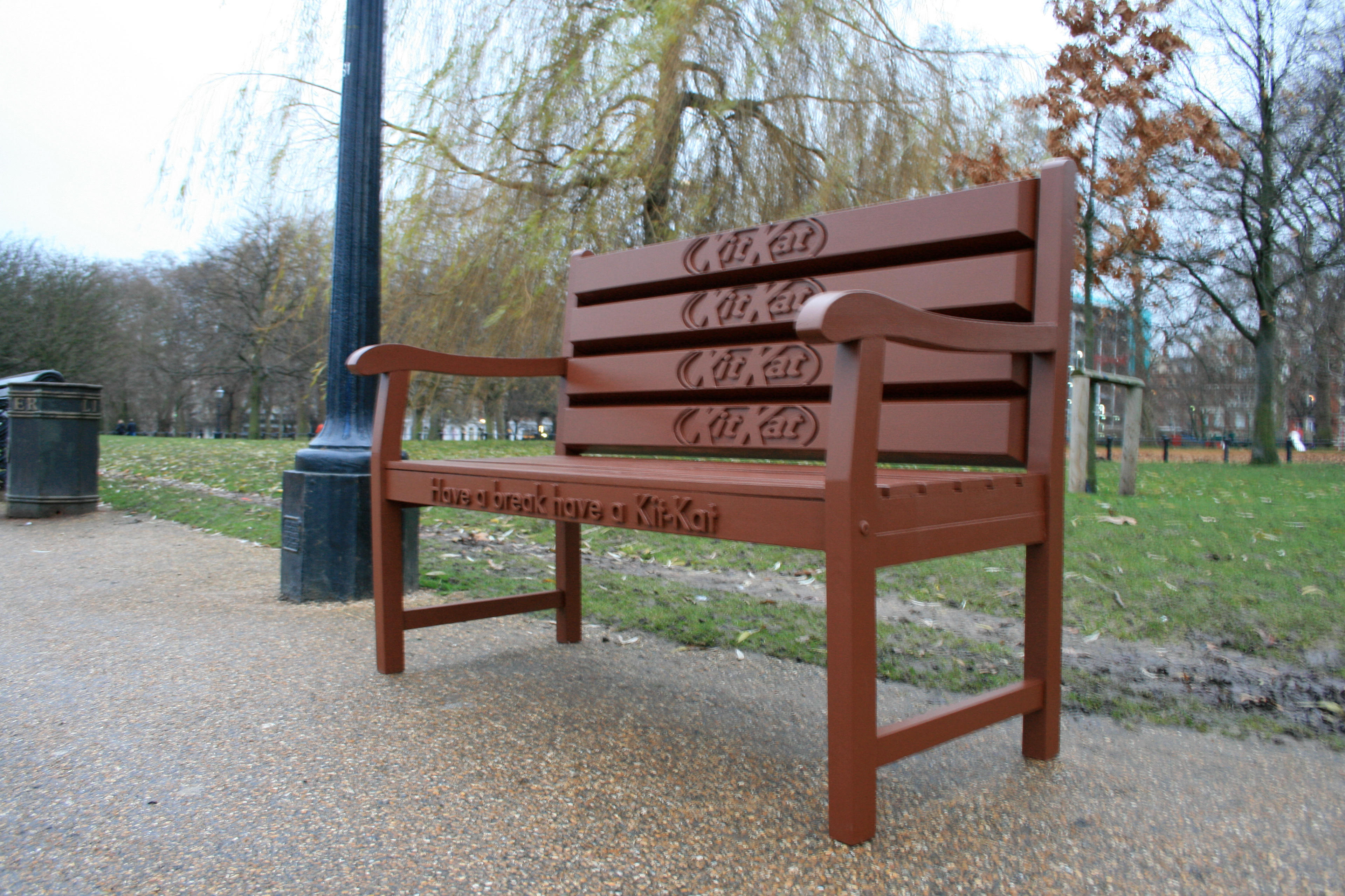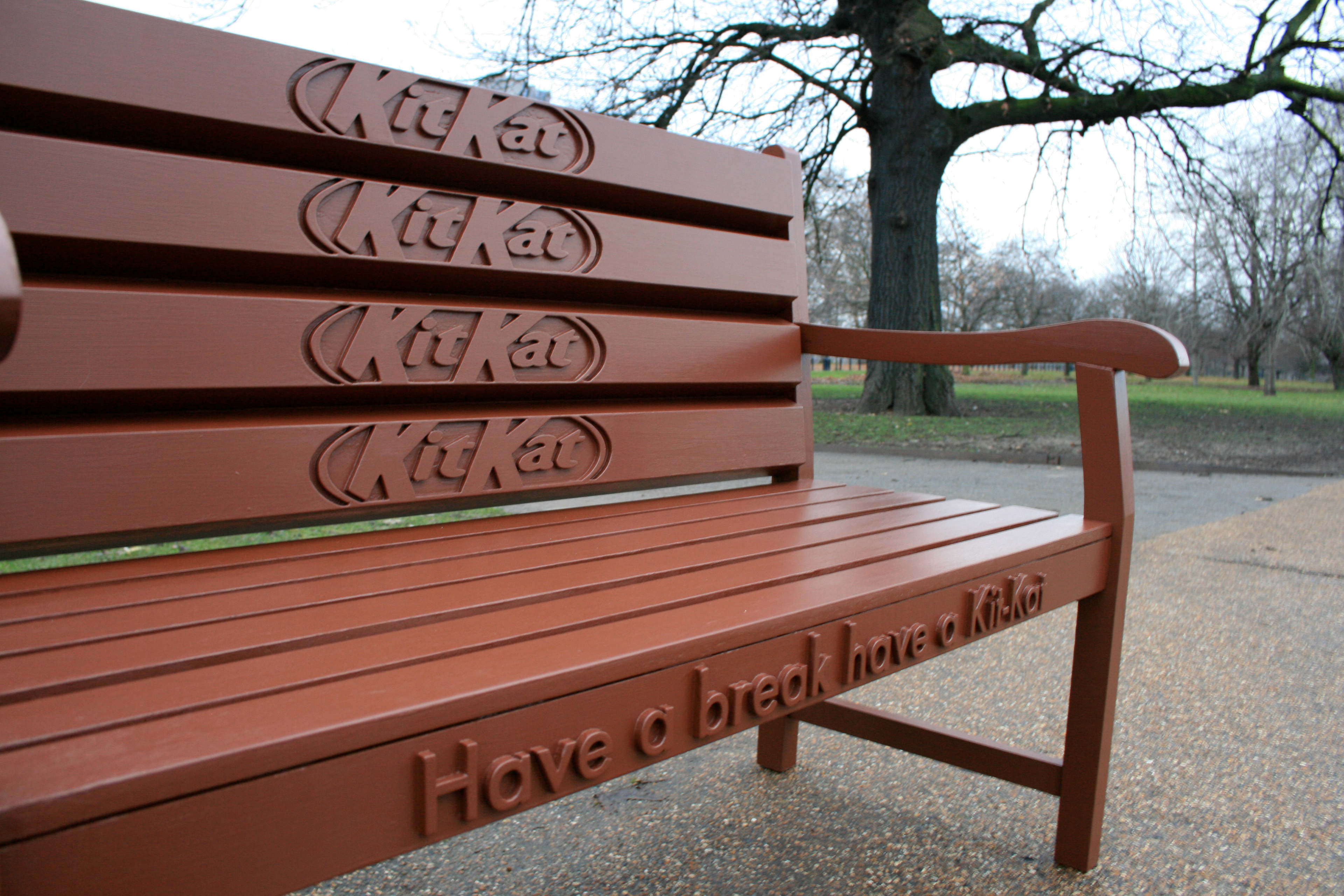 These special build laser-cut Kit Kat benches were placed in London parks. The response from the public and press to the benches was amazing and created a huge buzz online.